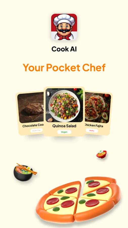 Welcome to Cook AI, the ultimate app designed to transform your cooking experience. Whether you're aiming to lose weight, maintain a healthy diet, or explore new recipes, Cook AI has you covered. Here's what you can do with our app: