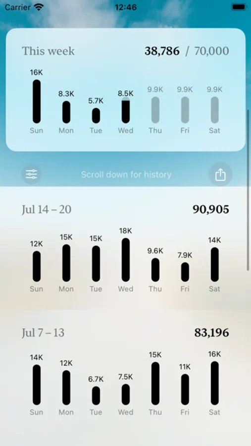 ~ Set a weekly goal and Saunter will set your daily step goals for you based on your progress towards your weekly goal.