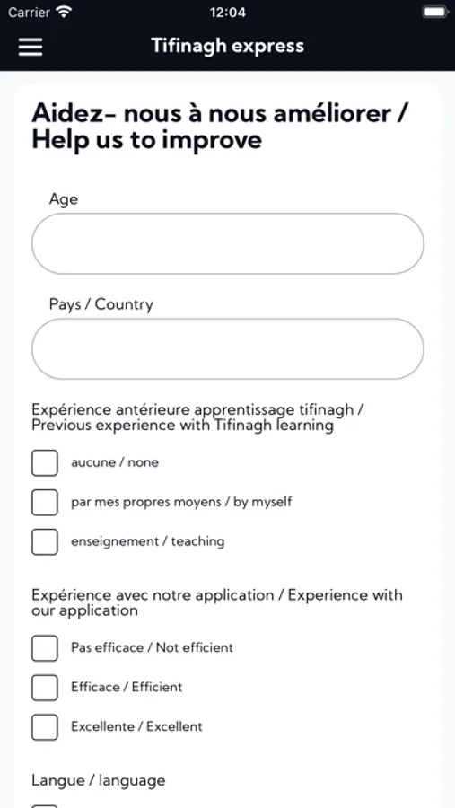 Découvrez Tifinagh Express, une application gratuite révolutionnaire conçue pour vous aider à maîtriser l’alphabet Tifinagh en un temps record. Développée par AnotherWay, notre méthode innovante réduit la charge cognitive du processus d’apprentissage, rendant l’acquisition de cette écriture ancienne facile et agréable. En apprenant le Tifinagh, vous contribuez à la revitalisation de la langue amazighe et vous ouvrez à une culture riche et fascinante. Téléchargez Tifinagh Express maintenant et faites le premier pas vers la découverte et l’appréciation du patrimoine amazigh !