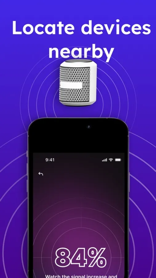 Should you misplace your device, this app allows you to utilize your paired iPad or iPhone to aid in its retrieval. Simply install the app, launch it, and let it lead you to your lost item. Our product works by attempting to establish a wireless connection with your device's unique signature.
