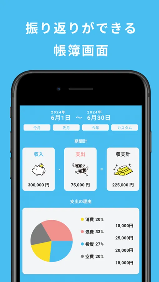 その日に記録するものがなくても、毎日なんとなく開きたくなるような、そんな家計簿アプリを目指して作りました。