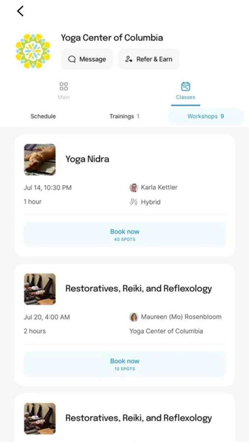 The Yoga Center of Columbia app makes it very easy for you to manage your Yoga Center of Columbia account, book into our classes and events and keep in touch with us. You can easily message us if you have a question or want to share something with us. You can also follow our public feed to see any announcements we make, promos we run, or content we share.