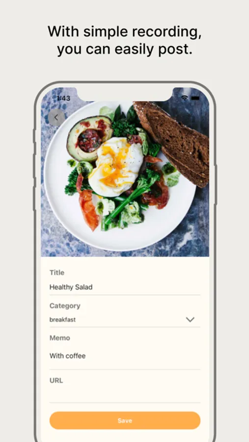 Record your daily meals beautifully and easily with an intuitive interface that allows for easy photo and text input.