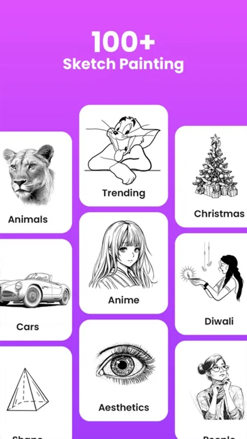 - Lots of tracing genres to trace anything: Animals, Nature, Food, Anime etc.