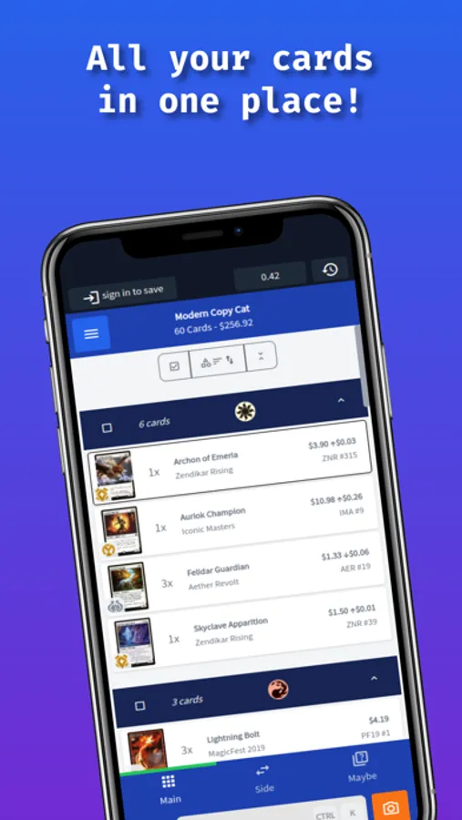 → Real-time pricing - Pricing from TCGplayer, CardKingdom, CardMarket (Europe), CardHoarder (MagicOnline), and MageMarket (Brazil). Currency conversion is available.