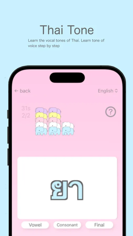 Let's master the Thai tone of voice with this app. It is designed to become gradually more difficult. Master the growth of Thai language like a game!