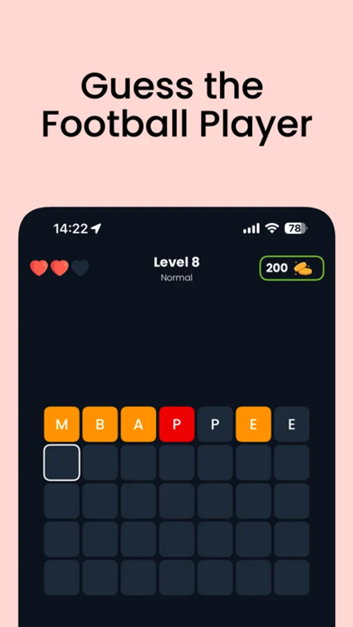 During the game, use your football knowledge and guessing skills to correctly identify the names of football players. Each correct guess tests your football knowledge while providing a fun experience. This app is ideal for both football enthusiasts and those who enjoy brain-teasing games.