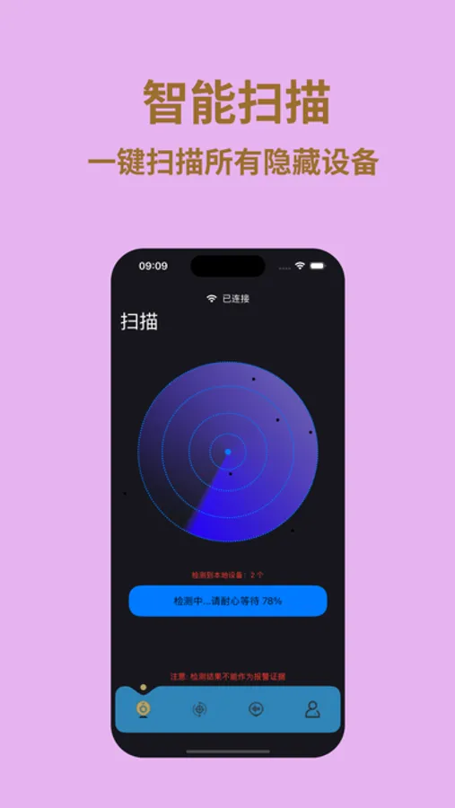 智能扫描:一键检测周围可能存在的隐藏设备,用户可以查看检测出来的设备;
