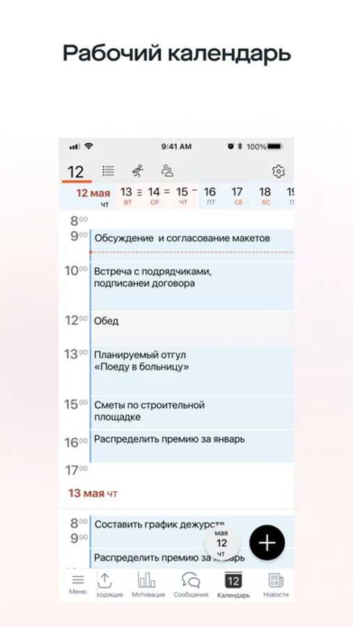• Рабочий график: планируйте свое рабочее время с помощью удобного календаря