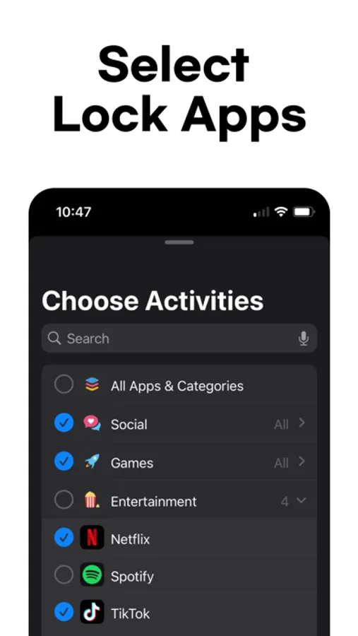 Individually allow essential apps to bypass the app blocker even during a lock. Flexibility within your app limit rules.
