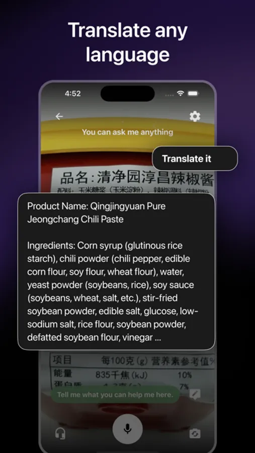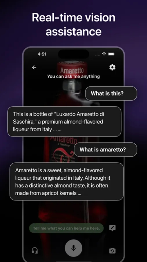 Whether it’s translating a menu, solving a puzzle, or discovering interesting facts, ChatCam’s AI insights are always at your fingertips. Simply speak, and your assistant provides instant, accurate answers powered by world-class AI technology.