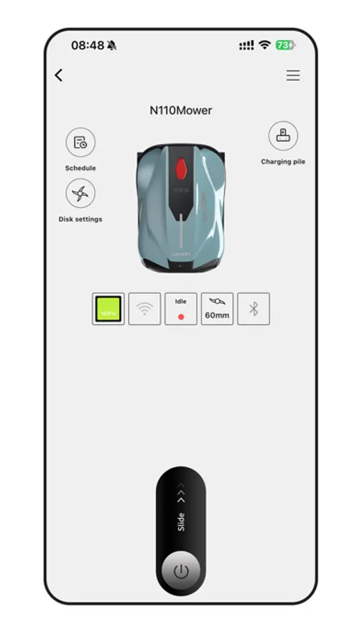 You can view the real-time information of the lawn mower operation and check the remaining power.