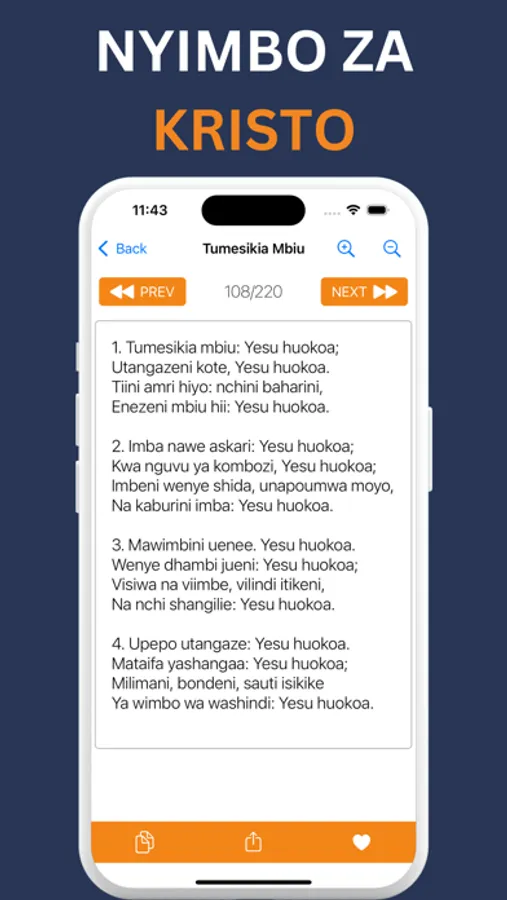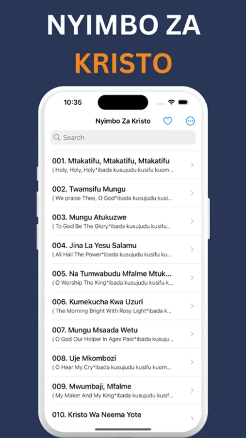 Get SDA Hymnal book in Swahili. It contains all the Nyimbo Za Kristo songs. It is designed for better user experience. It has tools made to make your search easier and faster, use the search bar at the Home Screen to search any song in the book. To get accurate results, use song number or song title in Swahili or English.