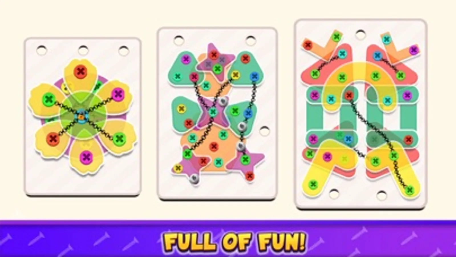 Introducing Nuts & Bolts Puzzle Game, a fun game that helps you get smarter by solving puzzles with wooden nuts and bolts. It's easy to play but gets harder as you go!