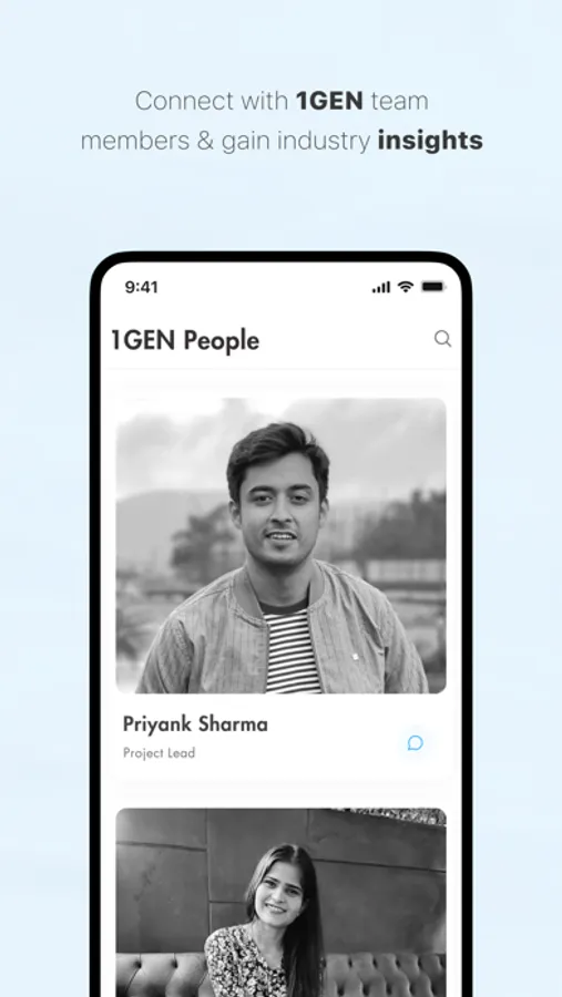 • Social Features: Connect with team members on a personal level and share stories through engaging features like reels and chats. Build a strong network and foster a positive and collaborative work culture at 1GEN. Get to know your team beyond work and build lasting relationships.