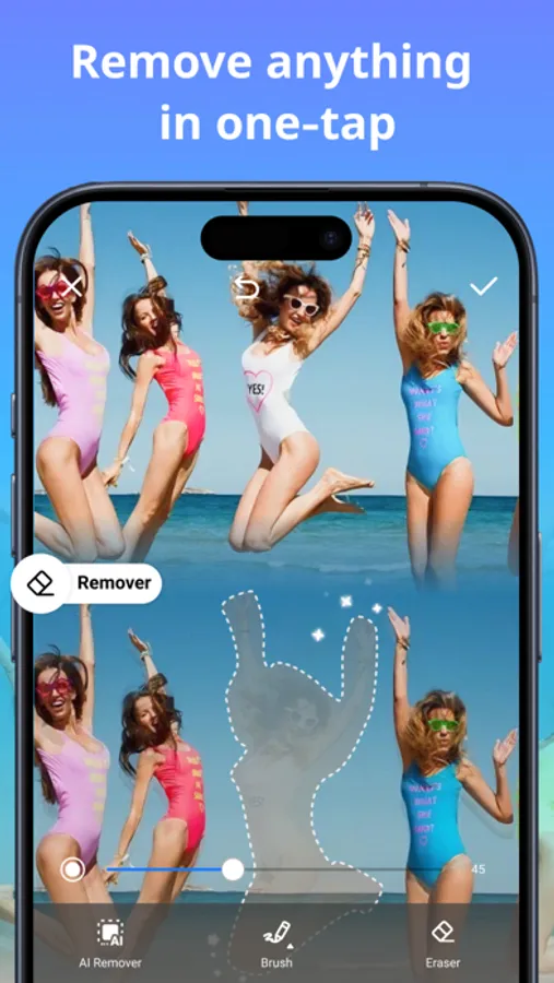 PhotoArt solves your problem of having to keep people or unwanted objects that appear in your favorite pictures. The powerful object removal function quickly removes irrelevant objects, watermarks, and passers-by, and handles details in place without a trace in AI Photo Enhancer.