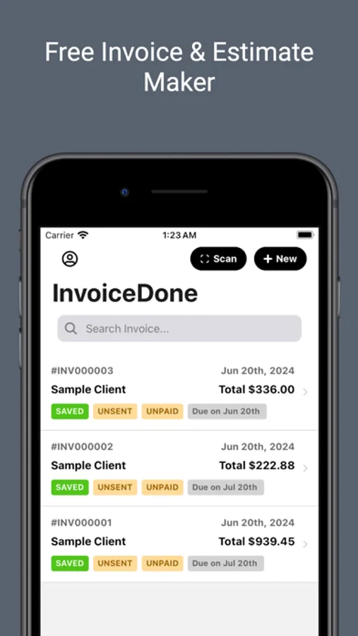 InvoiceDone is a Free Invoice Maker and a Free Estimate maker. It also comes with a Free Document Scanner.