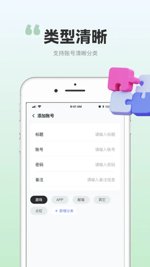 Used to record game accounts, app accounts, other accounts, passwords, email addresses, websites, bank cards, credit cards, etc.