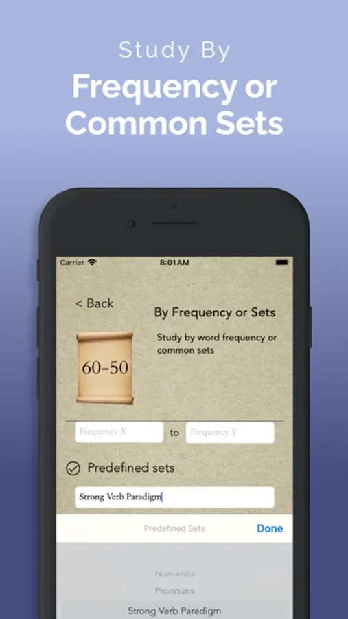 ParseHebrew is designed to help both beginning students and advanced students. Advanced students can quiz themselves by frequency or common sets. For beginning students, ParseHebrew has been designed to be compatible with today's top intro grammars: