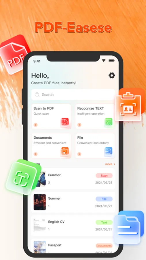 PDFEasese is a powerful free app that provides you with a variety of convenient PDF generation and management solutions. Whether you need to quickly scan paper documents and convert them to PDF, or extract text from photos and generate editable PDF documents, pdfeasese can meet your needs. The main features include: