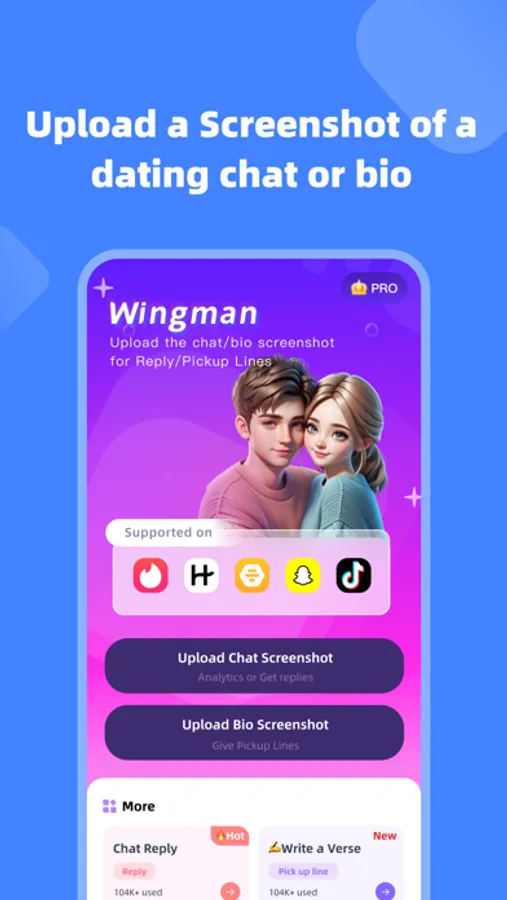 By uploading a screenshot, we will generate ingenious chat-up lines for you to help you start a pleasant communication.