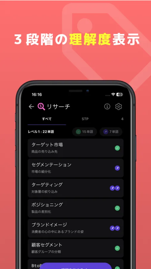 単語帳を自分で0から作るのは大変です。ぜひ「マーケティング単語帳」アプリでマーケティングの勉強をしてみてください。