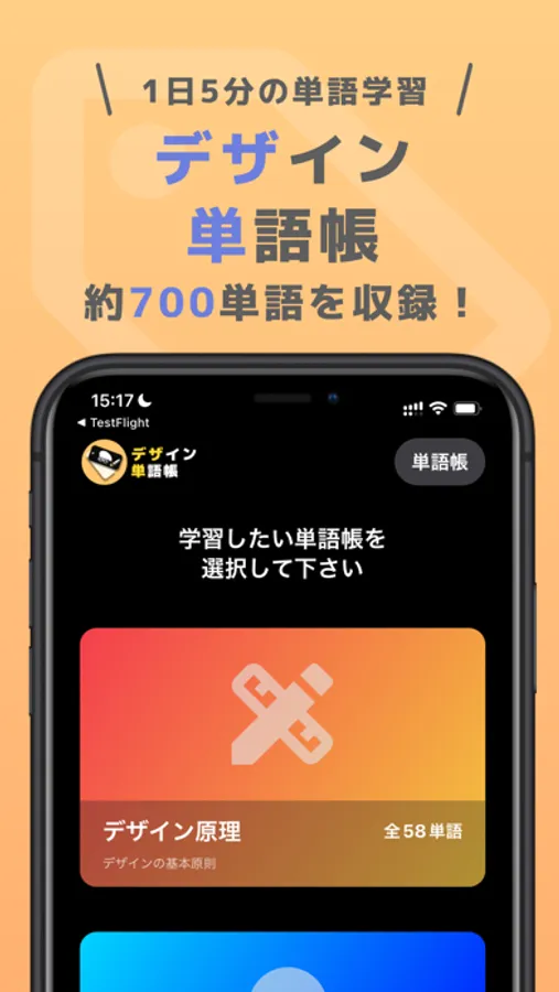 単語帳を自分で0から作るのは大変です。ぜひ「デザイン単語帳」アプリでデザインの勉強をしてみてください。