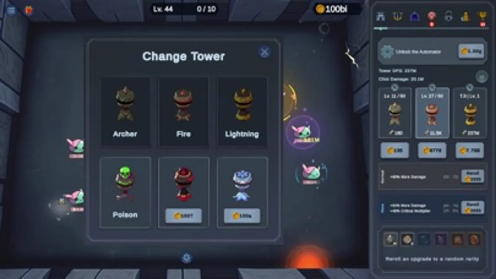 -Offline Progress: When you exit the game, your towers will keep farming for you. When you come back you will find all the precious rewards they found.
