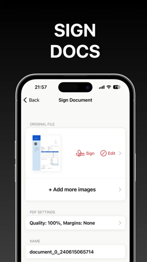 - Sign Documents Quickly: Create your signature and place it on any document with ease. Simplify your workflow and ensure your documents are signed and ready.