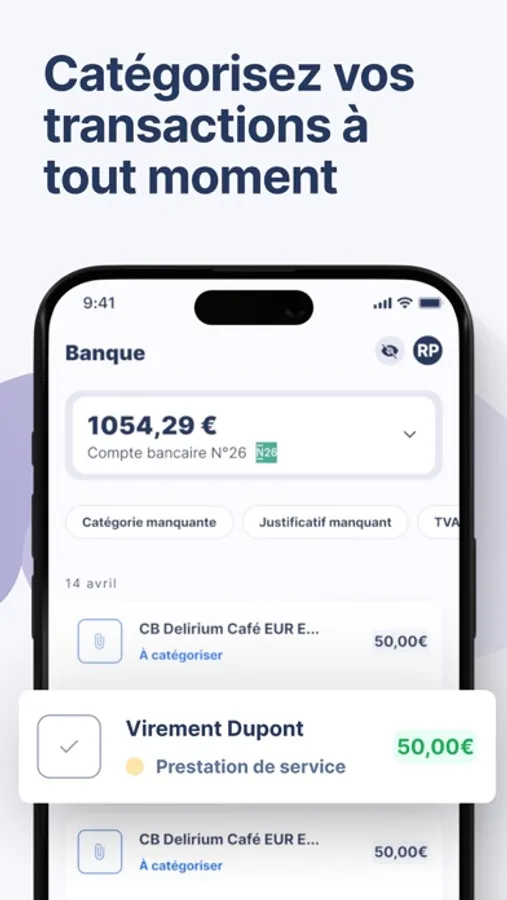 - Catégorisez vos transactions pour suivre précisément vos recettes et dépenses