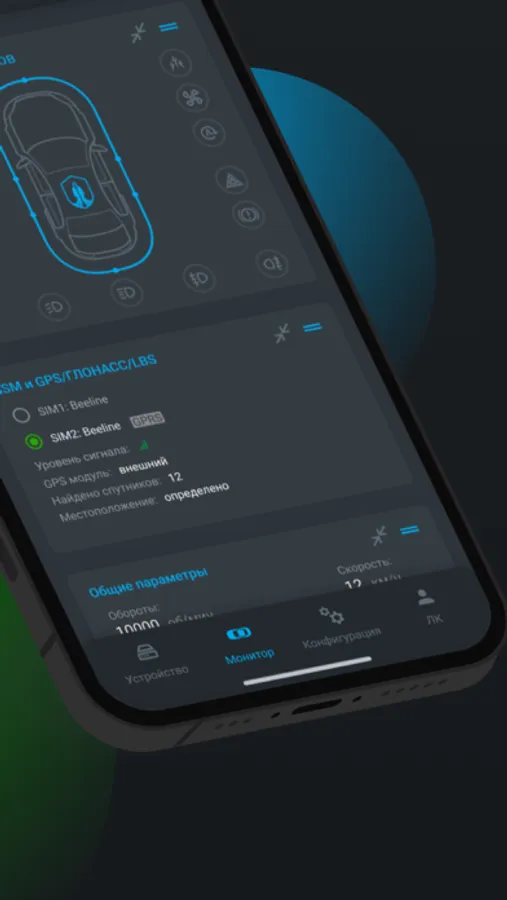 · контролировать параметры работы устройства и автомобиля в реальном времени;