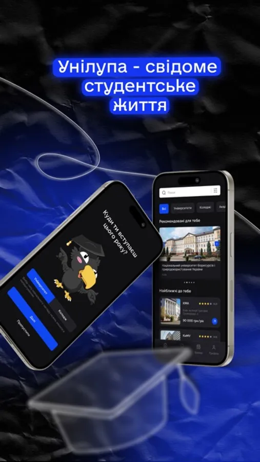 Унілупа — це онлайн-проєкт, завдяки якому Ти обереш Заклад вищої освіти відповідно до твоїх інтересів та потреб. Завантажуй Унілупу на свій смартфон та отримуй безкоштовний доступ до всієї необхідної при вступі інформації!