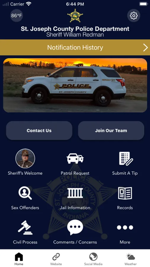 The St. Joseph County (IN) Police Department mobile application is an interactive app which will help improve our communication with the citizens of St. Joseph County. The purpose of this app is to improve our ability to communicate with our citizens Information which will include, but not be limited to Sheriff’ and more. Citizens may submit a crime tip directly through the app, as well as see and share social media posts. By empowering people through technology, the St. Joseph Police Department will be able to better protect our county.