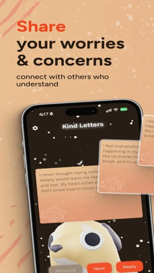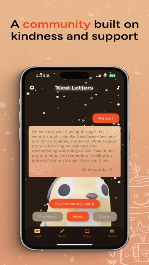 "Kind Letters" is a community-driven app designed to provide support and encouragement through the power of shared stories and kind words. Whether you're facing tough times or just need a little boost, our community is here to remind you that you are never alone.