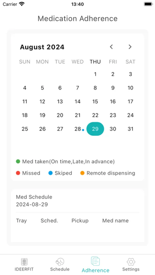 IDEERFIT app is an application for controlling IDEERFIT Automatic Pill Dispenser which provides remote real-time viewing of your equipment status, creation of medication plan, statistical medication log, remote distribution of drugs and other functions.