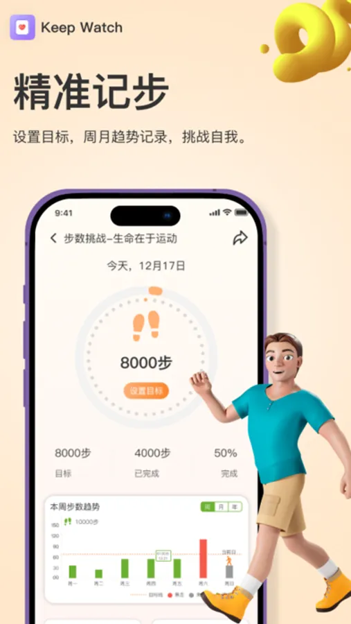 KeepWatch是您的健康,运动,表盘,体感游戏的一款综合手机手表应用软件,能够轻松的通过分析苹果手表来感知您的HRV压力监测,跟踪您的步数,喝水,睡眠,正念等及时提醒您的健康状态,精美的表盘设计,互动好玩的体验游戏,您佩戴apple watch即刻带来空中的交互娱乐体验,凭空敲木鱼+功德,空气沙包打碎稻草人。祝您娱乐健康成长!