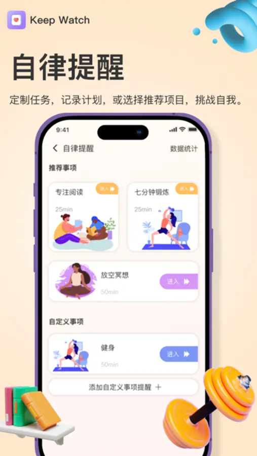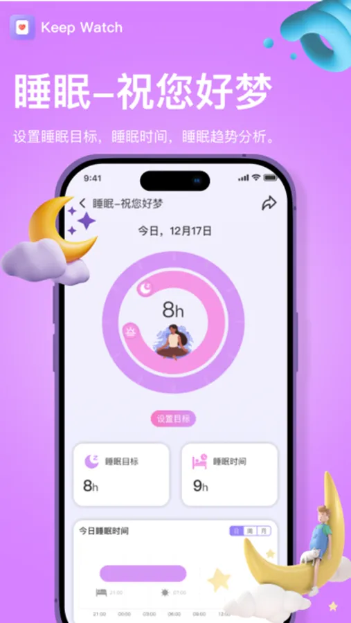 隐私与健康-KeepWatch 通过 Apple Healthkit API 只在你的设备上直接读取数据,你的所有数据只存储于本地,或您主动开启云 icloud 同步服务设备里。