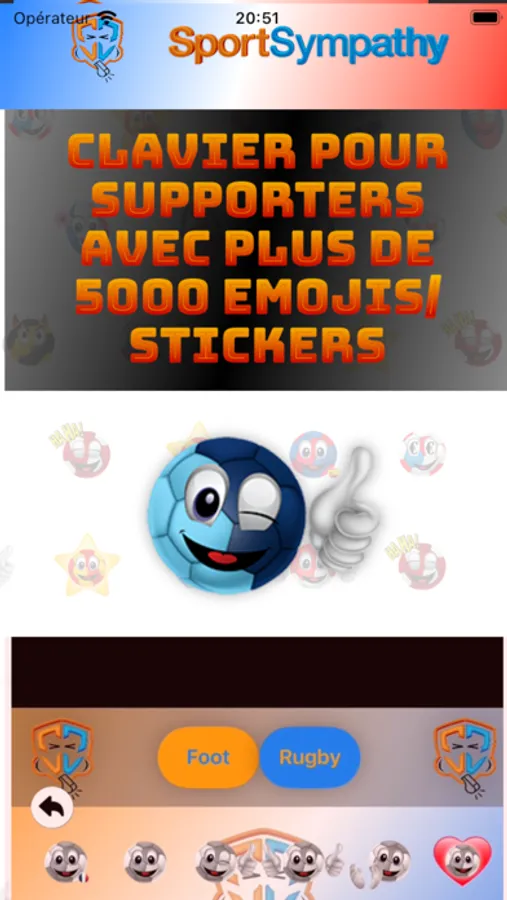 Le clavier SportSympathy regroupe des emojis aux thèmes de 130 équipes de football et de rugby de 8 pays !