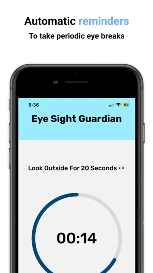 With Eye Sight Guardian, get automatically reminded every 20 minutes to look at something 20 feet away for 20 seconds. Just click the "start" button, and continue with your work! When you're done for the day, just open the app and click "stop" to stop the timer.