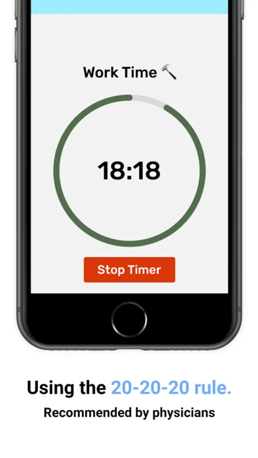 One method recommended by physicians, known as the "20-20-20 Rule," states that every 20 minutes, you should look at something at least 20 feet away for 20 seconds. This rule is effective at preventing eye overuse problems, but it's difficult for many (including the creators of this app) to follow it, because you have to set a new timer every 20 minutes, which means you have to actively, throughout your day, be remembering to restart the timer. Time flies, and it's common that you only realize that you forgot to reset the timer when the day's already over.