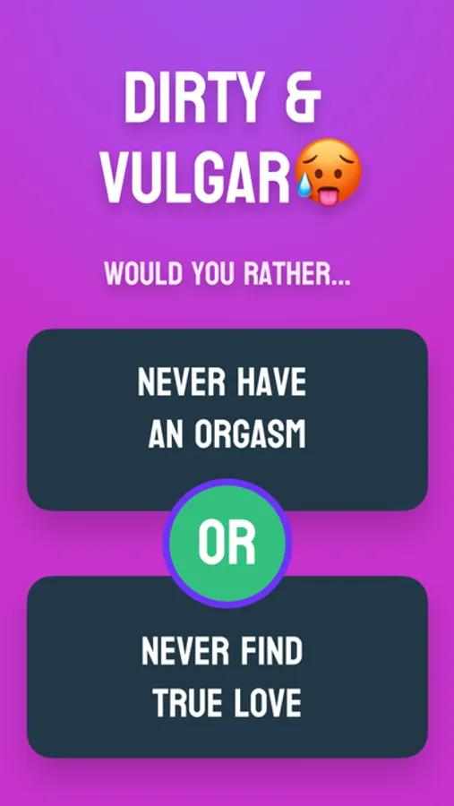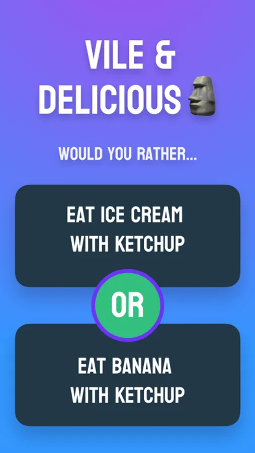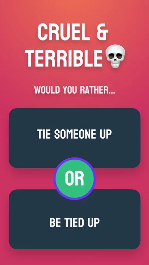 Would You Rather is a party game where you choose between two tough scenarios. It's up to you to decide what you'd rather do.
