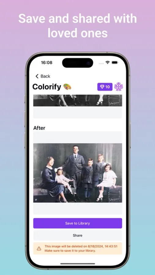 Share on Social Media: Instantly share your colorized photos with friends and family on social media or save them directly to your device.