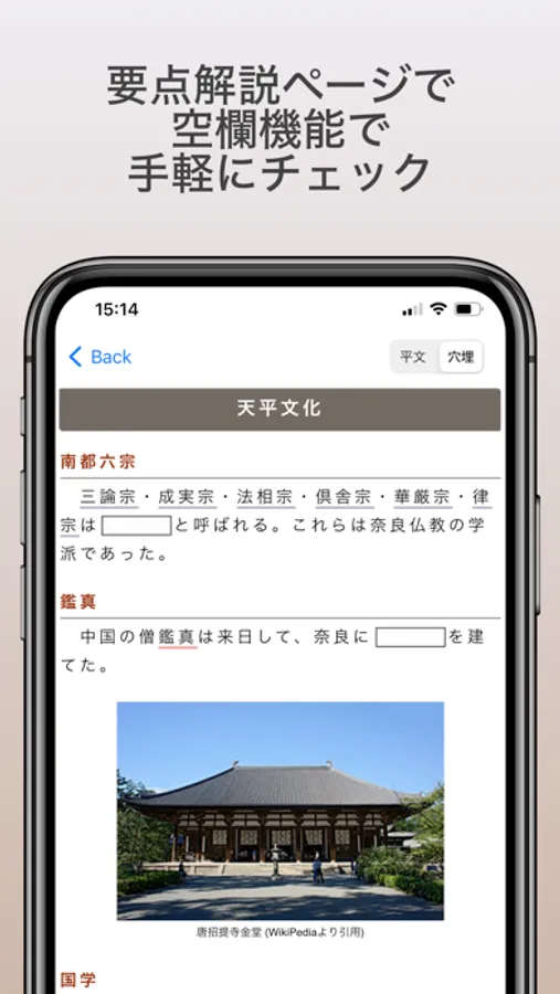 解説ページの重要語句を穴埋め形式で確認する機能もあり、要点解説ページだけでも学習することが可能です