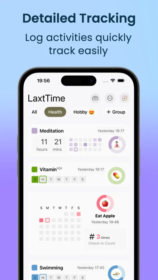 At the same time, LaxtTime will help you calculate the average number of check-ins and check-in times, helping you discover patterns in your life.