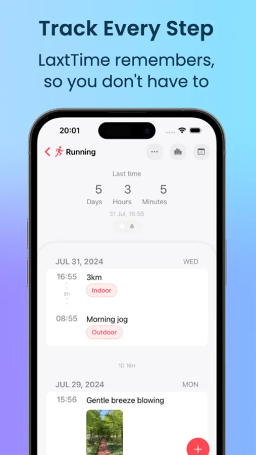 LaxtTime not only accurately records the last occurrence of each event but also automatically reminds you based on intervals you set.