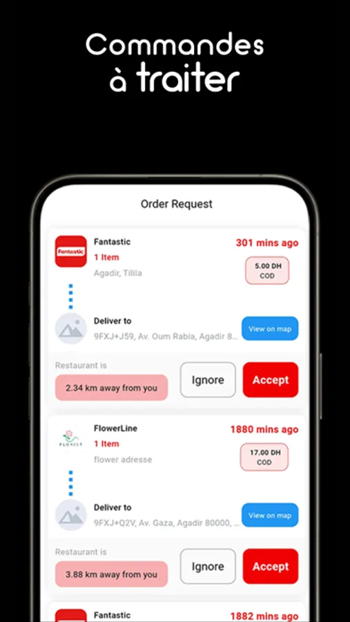 Acceptation rapide des commandes : Profitez au maximum de votre temps en ligne en acceptant les commandes en un seul clic.