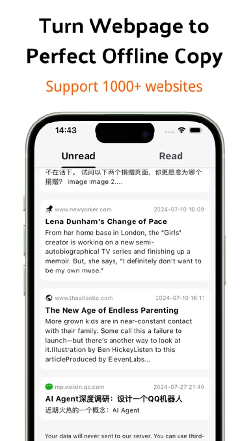 Save articles with a single tap and access them anywhere, even offline. FlowFerry's beautifully minimalist reader is optimized for Chinese and English content, ensuring a distraction-free reading experience.