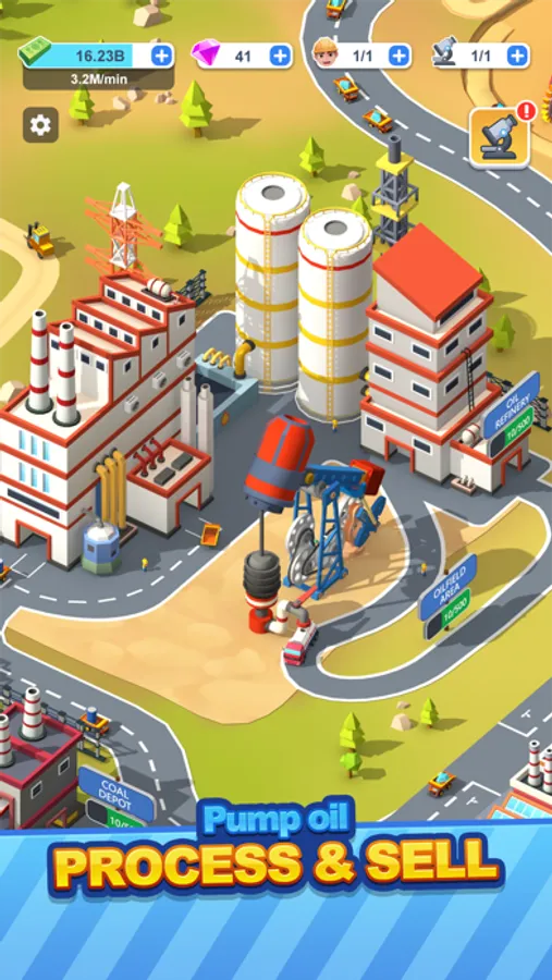 You need to upgrade the level of each of your facilities wisely to get a balance between their generation and consumption. Keep them digging, processing, and selling so you can get a steady stream of money.Expand your different industries, process and export for more money!