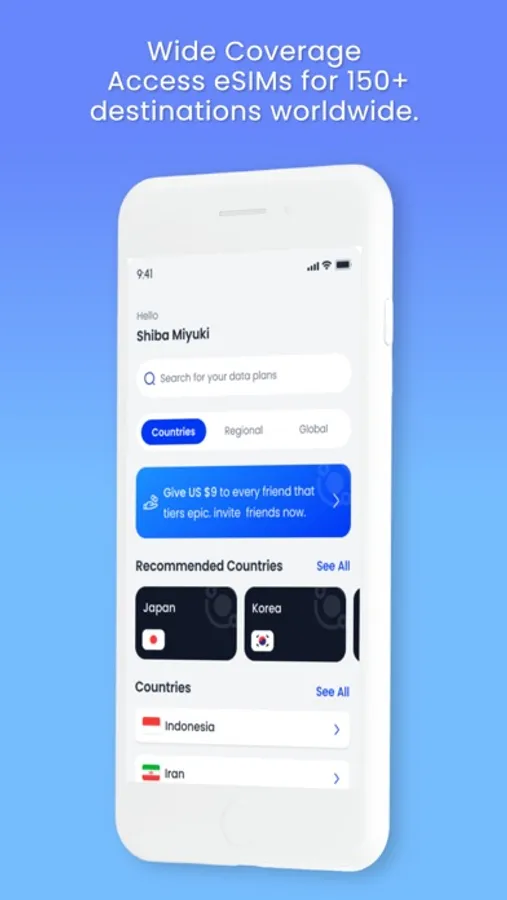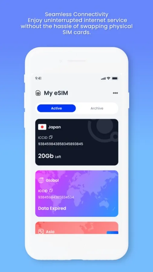 • Easy eSIM Purchase: Browse and buy eSIMs for various countries directly from the app.