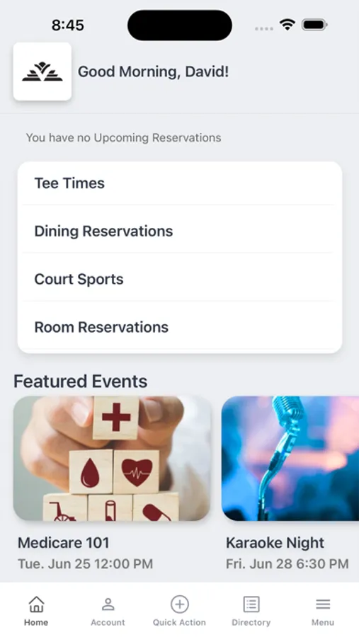 - Make Dining or Court Reservations